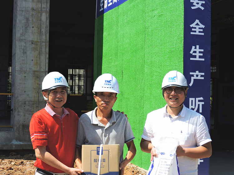 時至盛夏,酷暑盛行。為切實(shí)保障職工的生命安全和身心健康,推動防暑降溫措施落實(shí),7月17日至27日,天馬建設(shè)集團(tuán)綜合辦公室、安全生產(chǎn)部等一行人冒著高溫酷暑,對集團(tuán)各項目工地開展了“夏日送清涼”慰問活動,給一線工人們送去了綠豆、酸梅膏、藿香正氣水等清涼防暑用品,讓一線工人們在酷暑中感受到了一絲舒心的涼意。