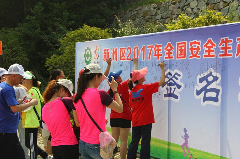 活動沿途安全生產宣傳標語也吸引了大家的眼球,上百名自愿者全程為參賽選手服務,確保徒步活動的成功落幕。完賽的選手紛紛在“安全生產月”簽名墻上合影紀念。
