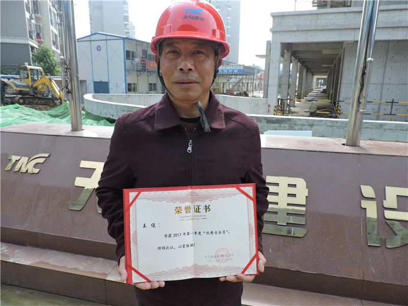 天馬建設集團2017年第一季度安全生產優(yōu)秀安全員:江騰廣場項目安全員——王金波