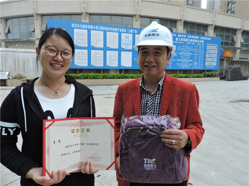 天馬建設集團2017年第一季度安全生產優(yōu)秀資料員:江騰廣場項目資料員——王青