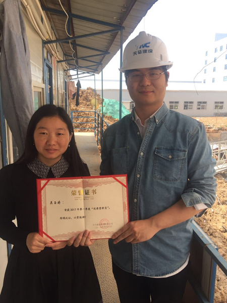 天馬建設集團2017年第一季度安全生產優(yōu)秀資料員:中新環(huán)保產品研發(fā)基地項目資料員——吳玉婷