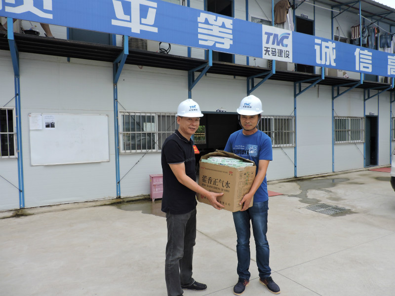 8月2日至5日,天馬建設集團總工余勝利帶領(lǐng)辦公室、工程部、策劃部一行人,冒著高溫酷暑,對集團各項目工地開展了“夏日送清涼”慰問活動,給一線工人們送去了綠豆、人丹、藿香正氣水等清涼防暑用品,讓一線工人們在酷暑中感受到了一絲舒心的涼意。