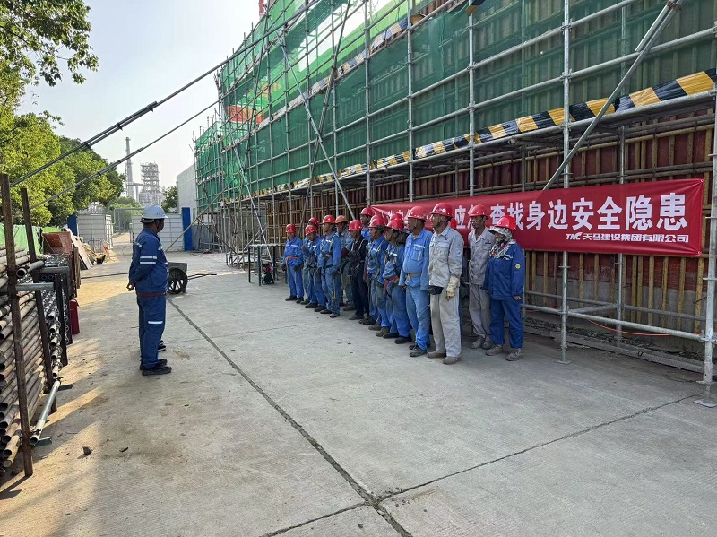 二是思想筑基,全體人員進(jìn)行宣誓。為進(jìn)一步提升全員安全意識(shí),夯實(shí)安全生產(chǎn)根基,項(xiàng)目部舉行年度安全生產(chǎn)教育培訓(xùn)活動(dòng),并組織一線工人在“人人講安全、個(gè)個(gè)會(huì)應(yīng)急——查找身邊安全隱患”主題橫幅上進(jìn)行莊嚴(yán)宣誓與集體簽名,以行動(dòng)傳遞安全責(zé)任。